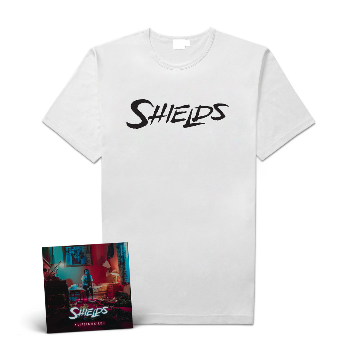Bundle contains Shields "Life In Exile" CD in Digipak and the exclusive "Shields"-Shirt, printed on Gildan Softstyle. (Release: April 20th, 2018)